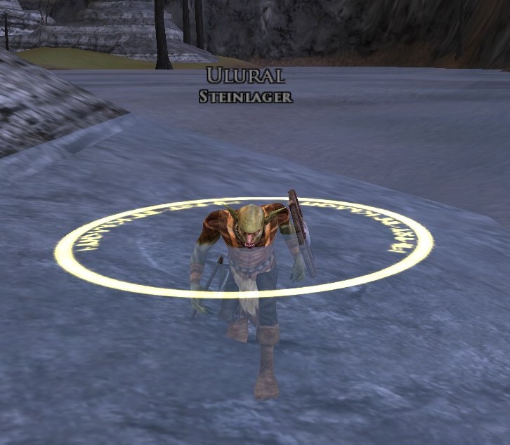 | Hinweis | Es gibt 2 Platzhalter für diesen Gegner. 1. „Wanderer“ - Verrückter Steinheber (12.7S, 49.7W) 2. „Statischer“ - Verrückter Steinheber (12.8S, 49.6W) bewegt sich um das am Fluß gelegene Bilwiss Lager |