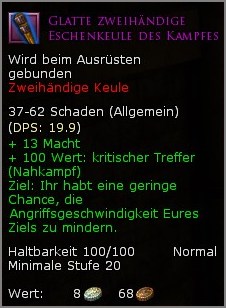 Einmalige Rezepte des Drechslers (Geselle): Saphirsplitter/Nahkampfwaffen (Stufe 20)